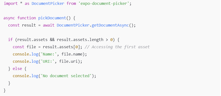 After upgrading to Expo SDK 51, the getDocumentAsync() function in expo-document-picker now returns an array of assets instead of a single object. This required updating the code to properly handle the response when accessing document details.